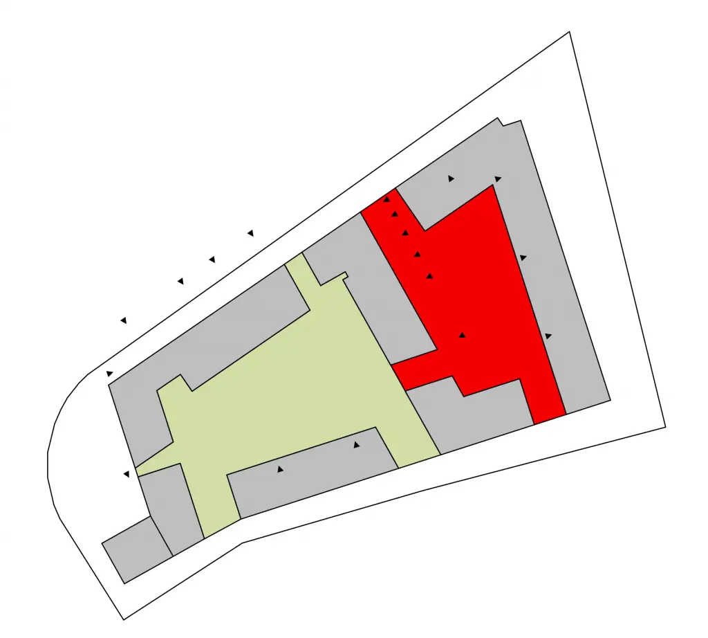 Die sonst im Wettbewerb stehenden Architekturbüros entwickelten so gemeinsam in einem großen Karree gruppierte, gegliederte drei- bis viergeschossige Mehrfamilienhäuser. Staffelgeschosse sind denkbar als Ausgleich zu Gemeinschaftsflächen im Erdgeschoss wie Mieter-Treffs, Werkstätten, Fahrradschuppen o.ä.